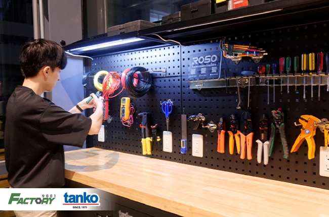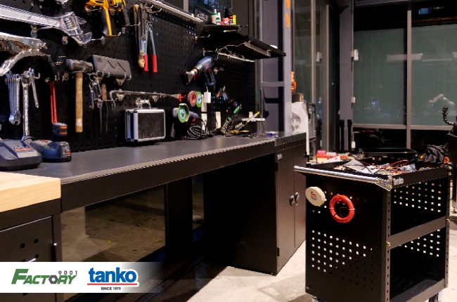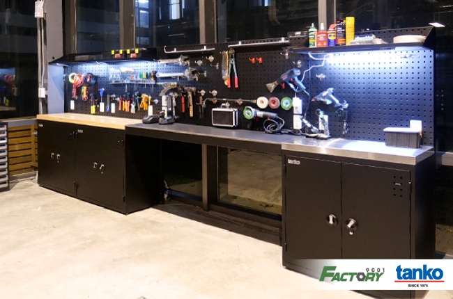 เครื่องมือที่นำมาใช้งาน ได้แก่ ชุดตู้เก็บเครื่องมือช่าง ตู้เก็บเครื่องมือติดล้อ แผงแขวนอุปกรณ์