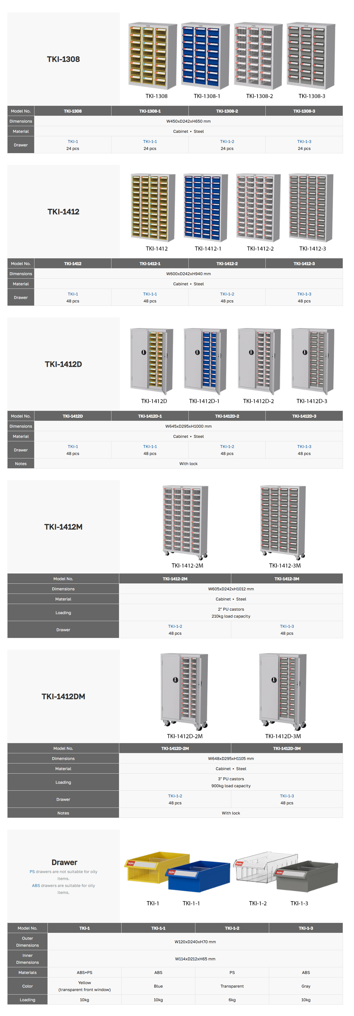 ภายในตัวตู้มี โครงรองรับน้ำหนักเฉพาะแต่ละลิ้นชัก