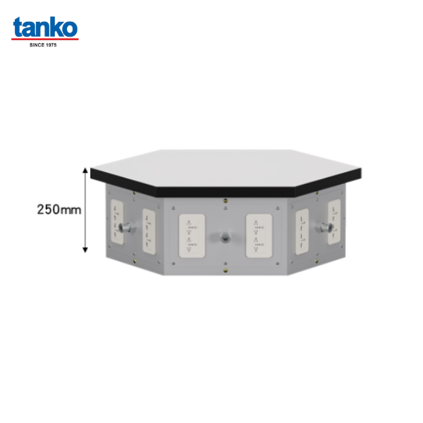 ชื่อสินค้า : โต๊ะช่างหกเหลี่ยมหน้าท็อปยางพร้อมตู้เหล็กลิ้นชักและช่องปลั๊กไฟ