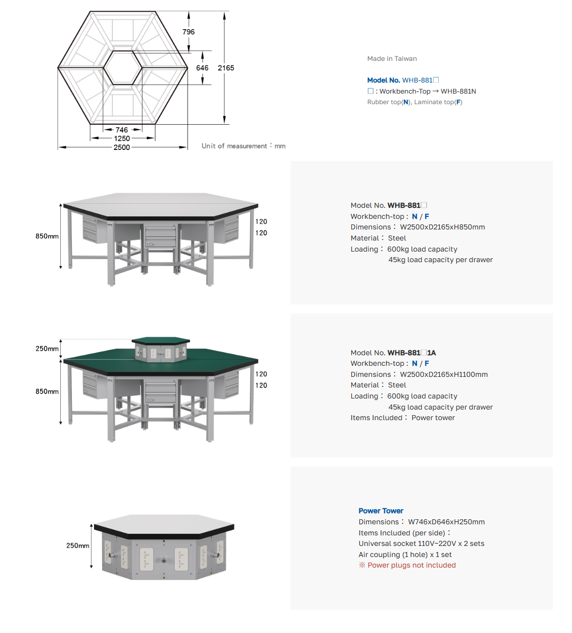 ชื่อสินค้า : โต๊ะช่างหกเหลี่ยมหน้าท็อปลามิเนต