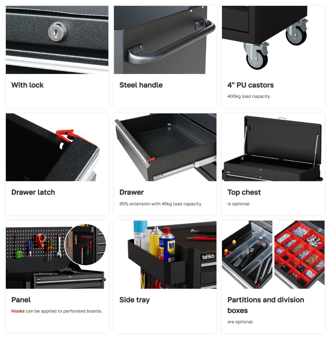 ชื่อสินค้า : ตู้เก็บเครื่องมือช่างติดล้อ5ลิ้นชักพร้อมแผงแขวนเครื่องมือ