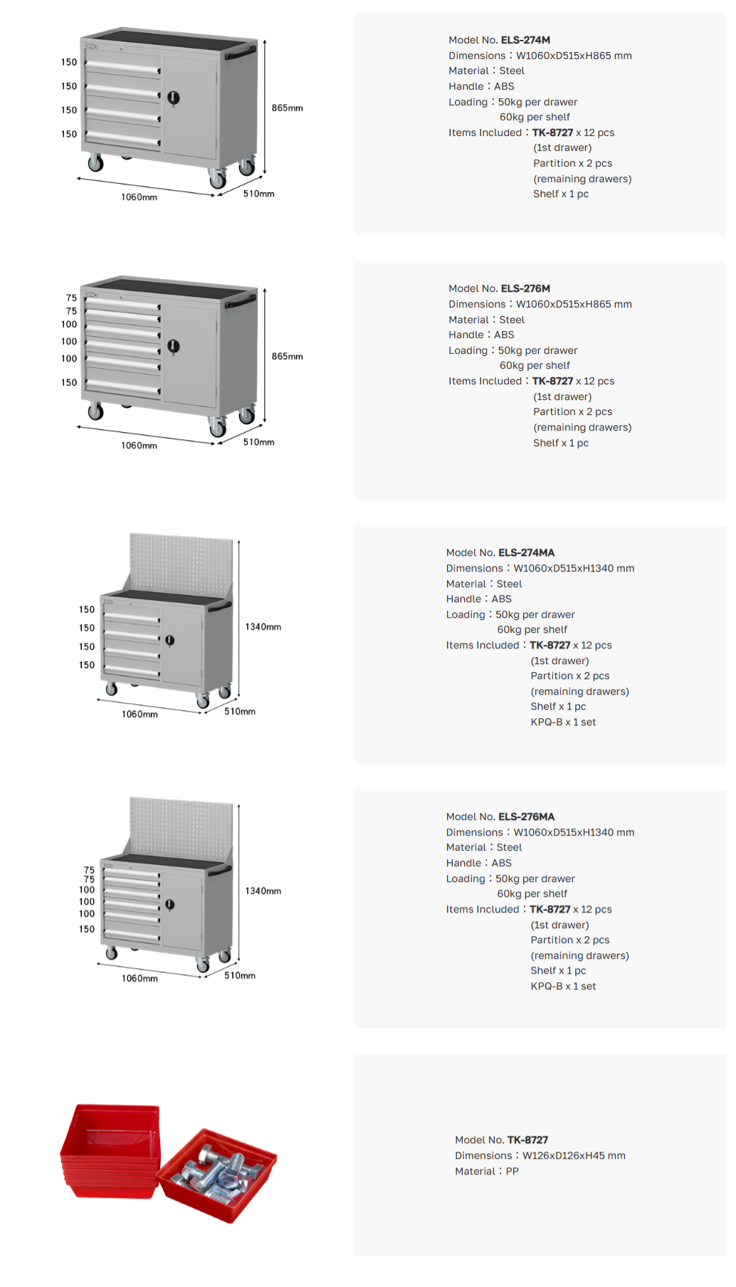 ตู้เก็บเครื่องมือช่างติดล้อ + ตู้บานเปิด มีขนาด W1070xD515xH863 mm.