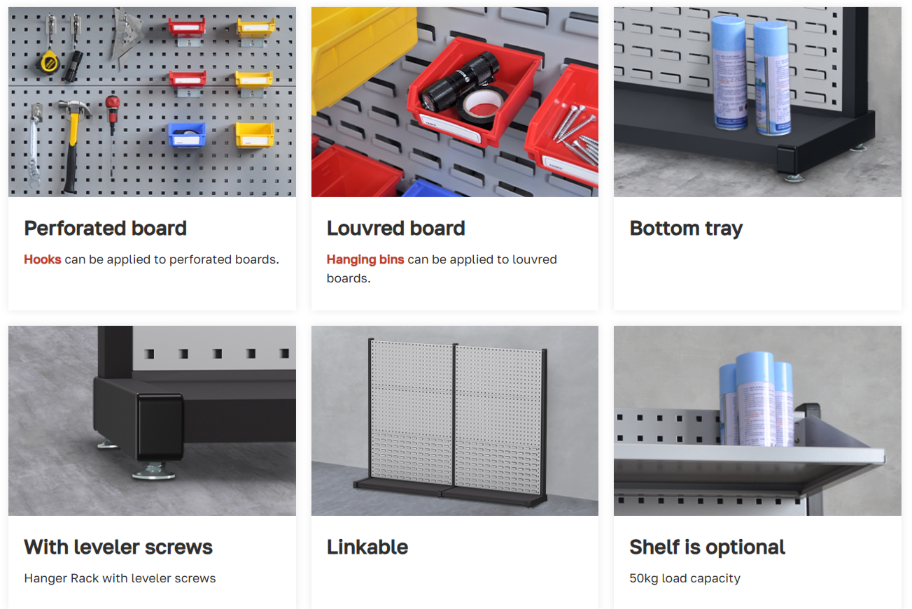 ชื่อสินค้า : แผงเแขวนเครื่องมือตั้งพื้น 1 ด้าน (Hanger Rack)