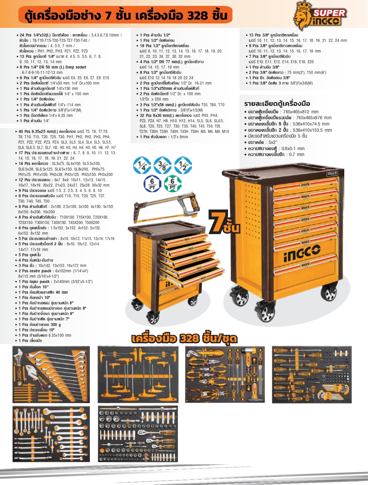 • ขนาดตู้เครื่องมือรวมล้อ : 765x465x976 มม.