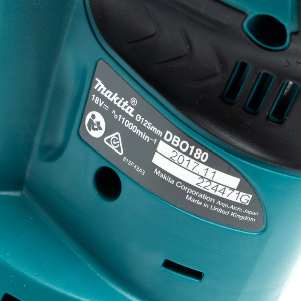 เครื่องขัดกระดาษทรายไร้สาย ขนาด 5 นิ้ว (125 มม.) แบรนด์ MAKITA (DBO180) มากับ ระบบตั้งค่าความเร็วพร้อมสวิตช์ ไม่รวมแบตเตอรี่และแท่นชาร์จ รุ่น M011-DBO180Z
