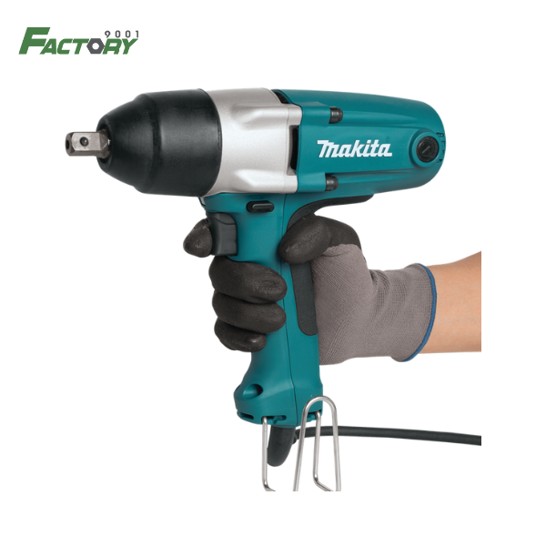 เครื่องขันน็อตไฟฟ้า แบรนด์ MAKITA มาพร้อมกับ ด้ามจับ สวิตช์โยก ด้ามจับ และระบบแรงกระแทก รุ่น M011-TW0200