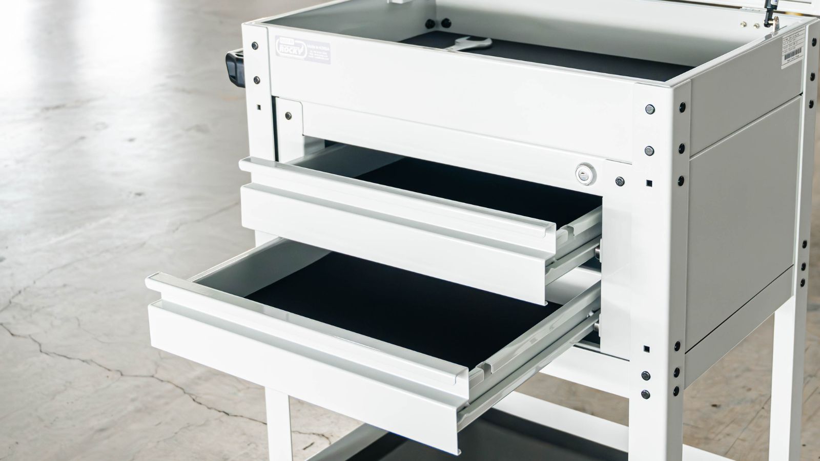 ด้านในรถเข็น มีลิ้นชัก จำนวน 2 ลิ้นชัก สำหรับจัดเก็บ