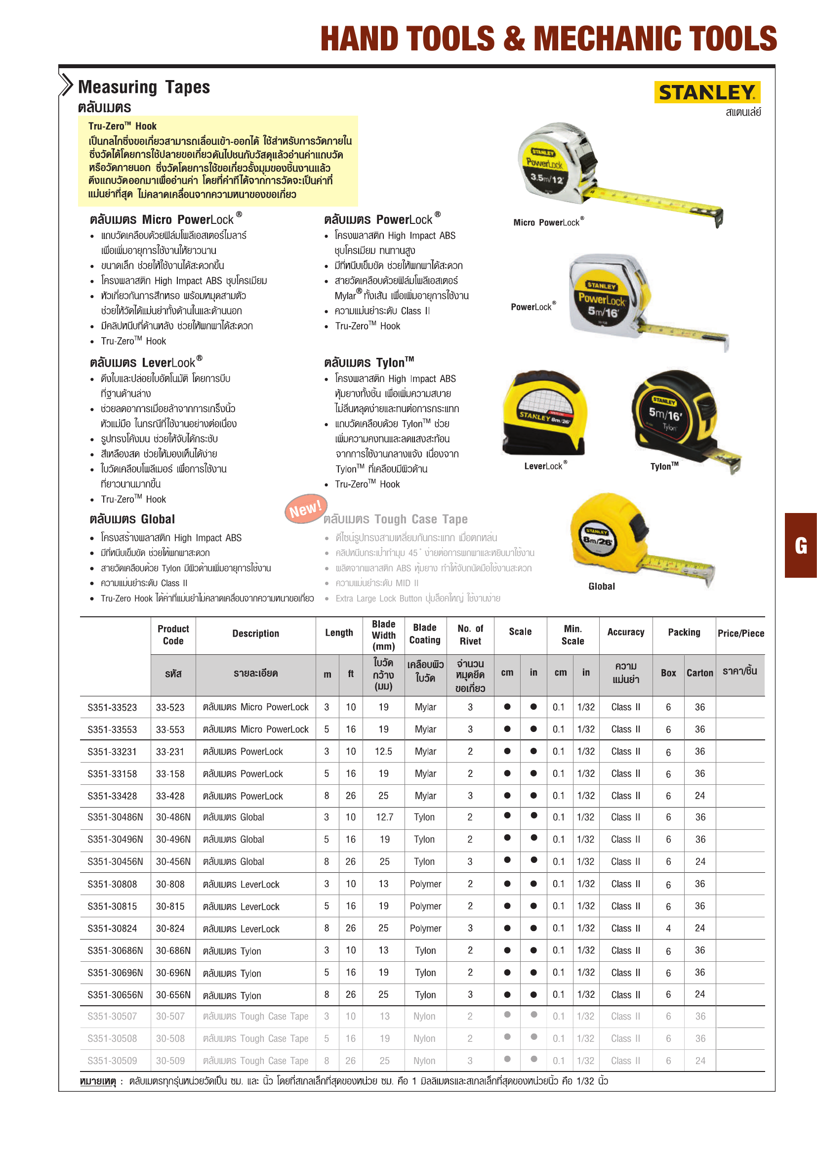 อุปกรณ์เครื่องมือช่าง ตลับเมตร แบรนด์ STANLEY รุ่น S351-3315821109