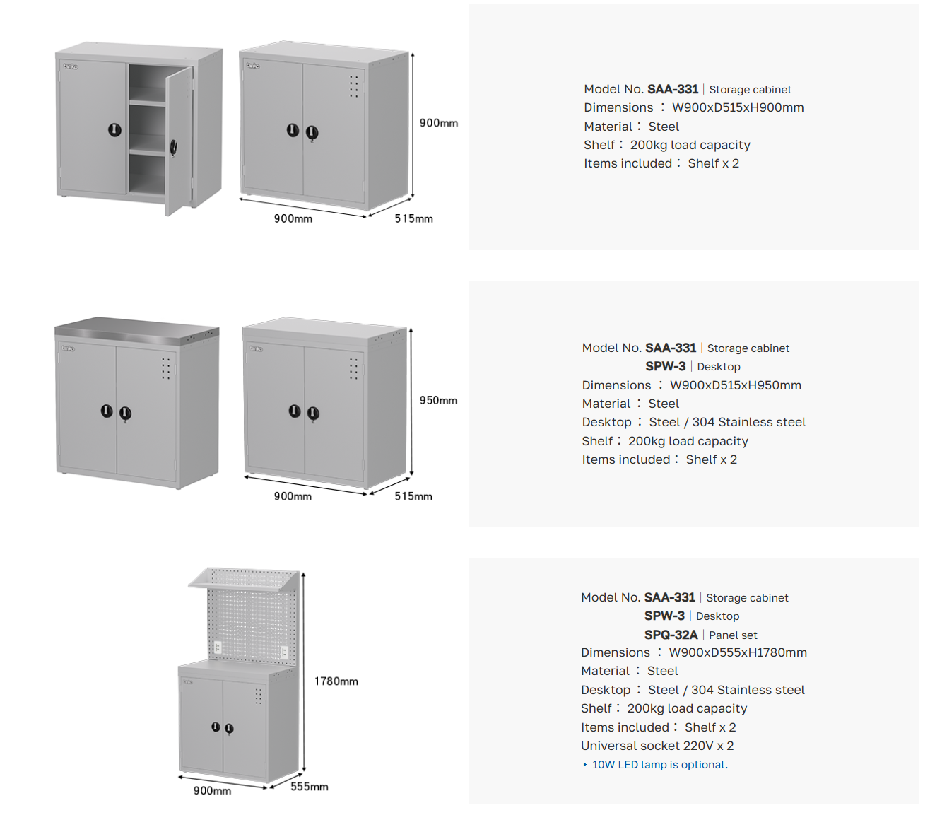 ขนาด : W900 x D515 x H900 mm.
