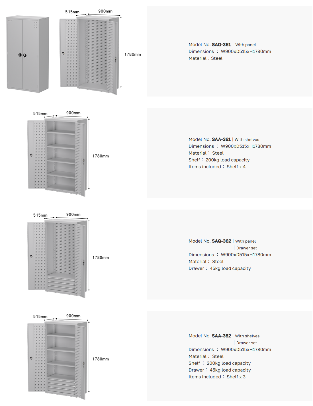 ขนาด : W900xD515xH1780 mm.