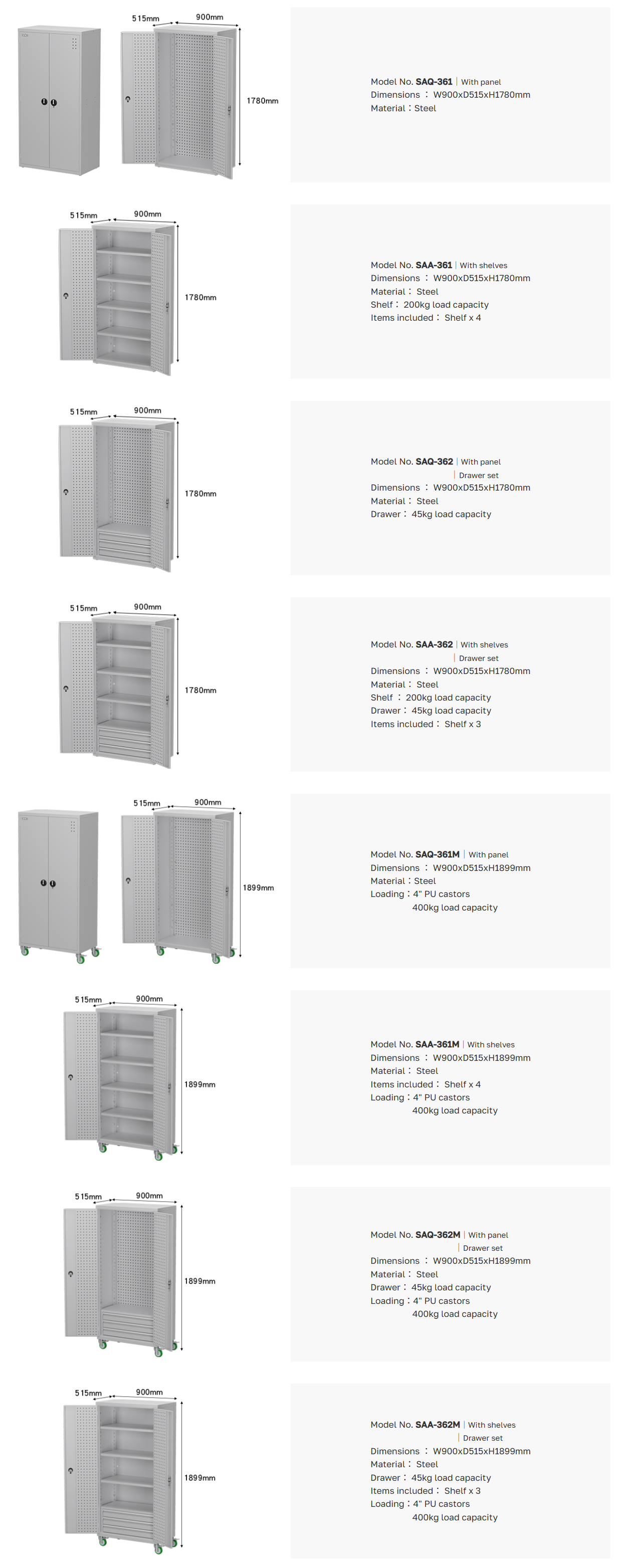 ขนาดตู้สินค้า : W900 × D515 × H1899 mm. (รวมล้อ)