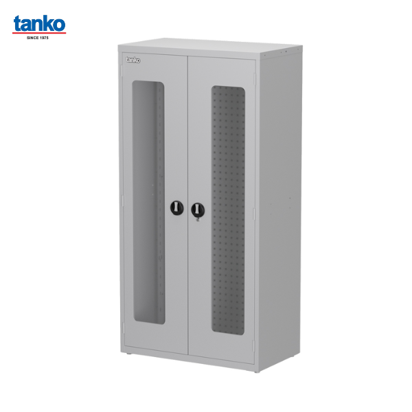 ชื่อสินค้า : ตู้เหล็กเก็บเครื่องมือช่าง พร้อมรูแผงแขวนเครื่องมือ ประตูบานใส