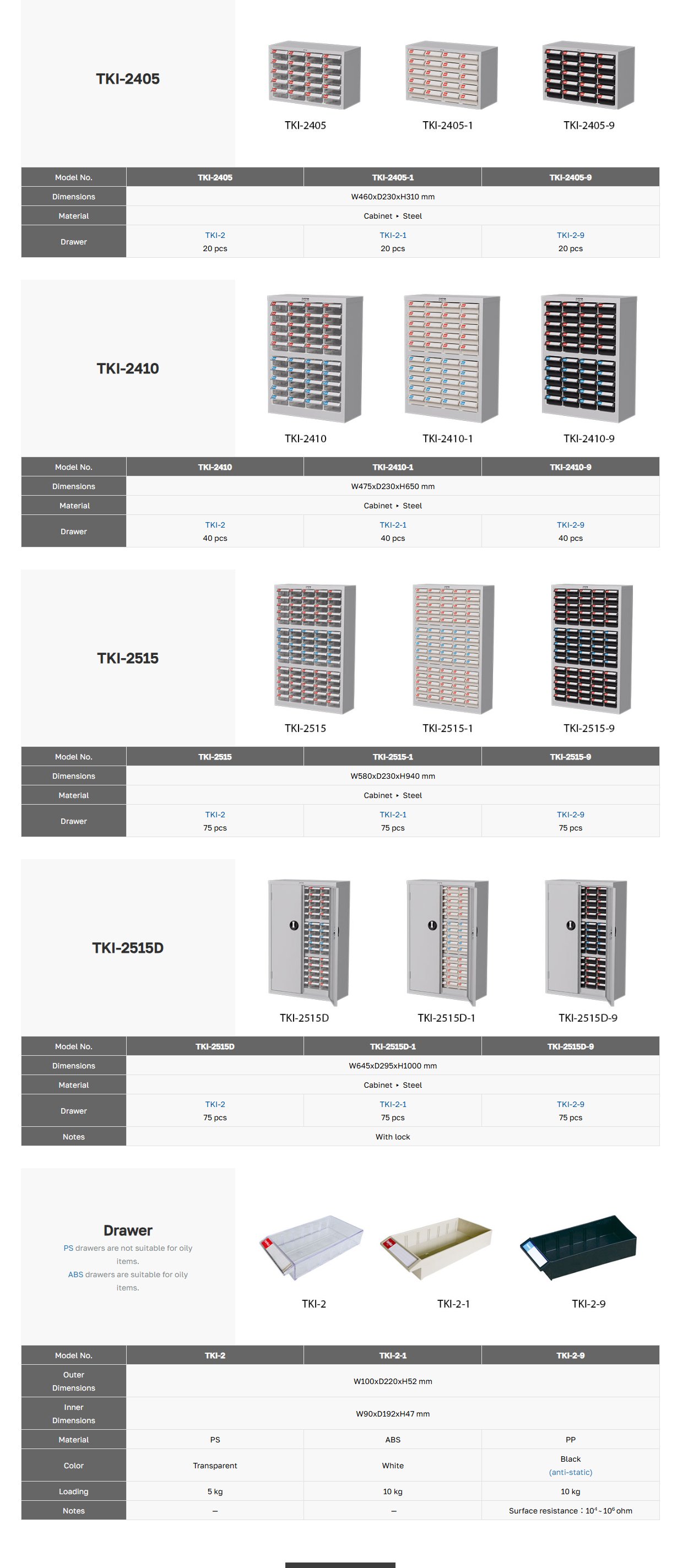 TANKO เป็นแบรนด์ชั้นนำที่ได้รับความนิยมอันดับ 1 ในไต้หวัน ด้วยความเชี่ยวชาญด้านการออกแบบและผลิตเฟอร์นิเจอร์อุตสาหกรรม ที่คำนึงถึงความต้องการของผู้ใช้งานจริง ตู้เก็บอะไหล่ TANKO ถูกพัฒนาให้มีความแข็งแรง ทนทาน รองรับทุกประเภทงานช่างและอุตสาหกรรม จุดเด่นของตู้เก็บอะไหล่ TANKO คือ การเลือกใช้วัสดุที่แตกต่างกันตามลักษณะการใช้งาน โดยลิ้นชักผลิตจาก PS, ABS, ABS+PS, หรือ PP+PS ซึ่งบางรุ่นสามารถ ทนน้ำมัน และรองรับน้ำหนักที่แตกต่างกัน เช่น 5 กิโลกรัม 6 กิโลกรัม และ 10 กิโลกรัมต่อชั้น ด้วยมาตรฐานการผลิตที่พิถีพิถัน และการออกแบบที่ตอบโจทย์ทุกการใช้งาน ทำให้ TANKO ได้รับการยอมรับจากโรงงานอุตสาหกรรมชั้นนำทั่วโลก หากคุณกำลังมองหาตู้เก็บอะไหล่ที่มีความทนทาน ปรับใช้งานได้หลากหลาย และช่วยจัดเก็บอุปกรณ์ได้อย่างมีประสิทธิภาพ TANKO คือ ตัวเลือกที่มั่นใจได้