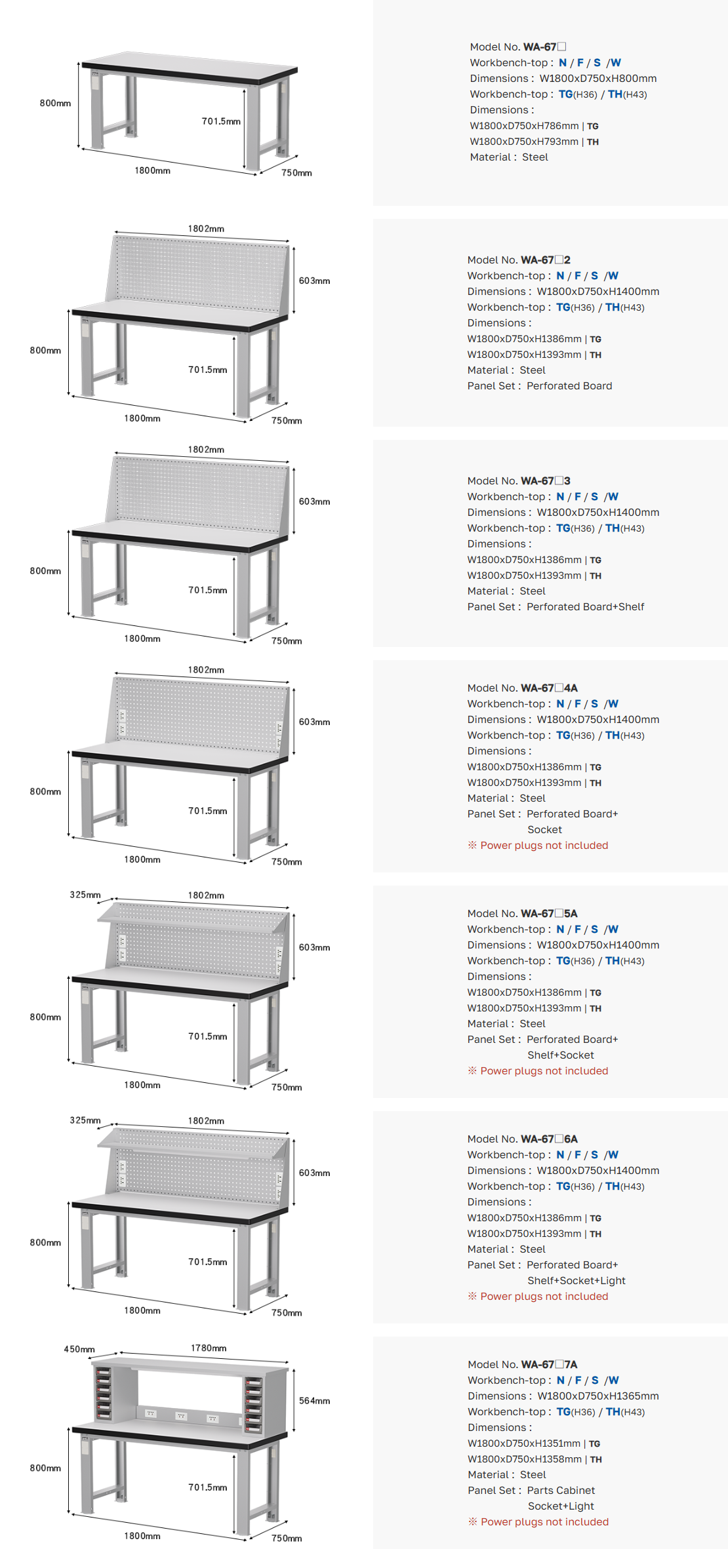 ขนาดโต๊ะทำงานช่าง : W1800xD750xH800 mm.