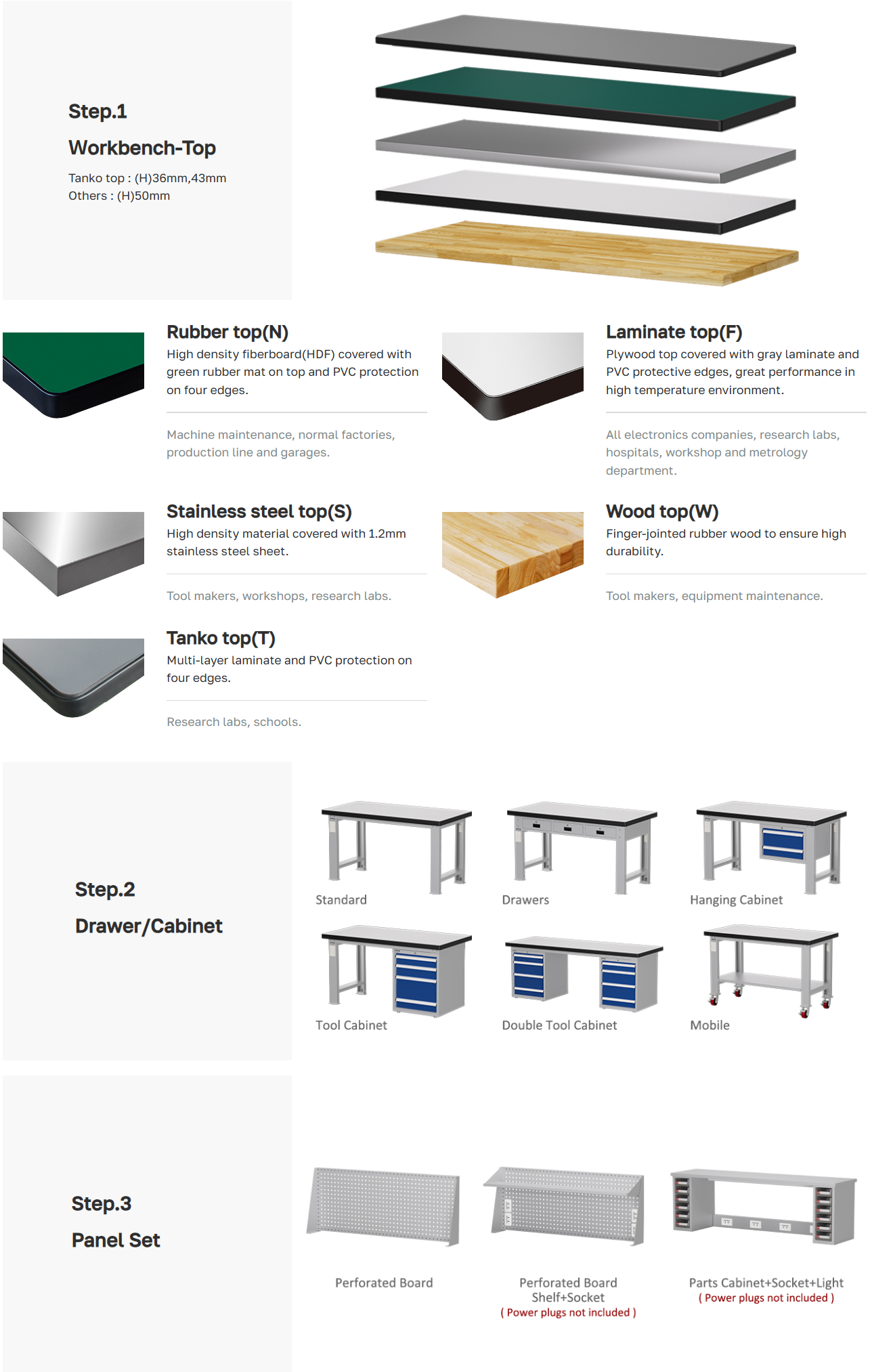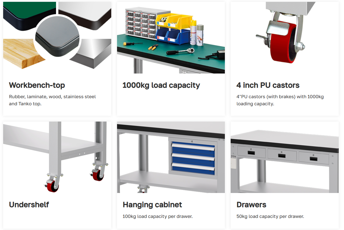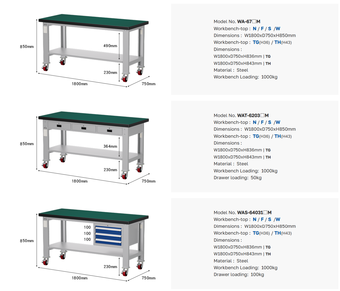 ขนาดโต๊ะทำงานช่าง : W1800 x D750 x H850 mm.