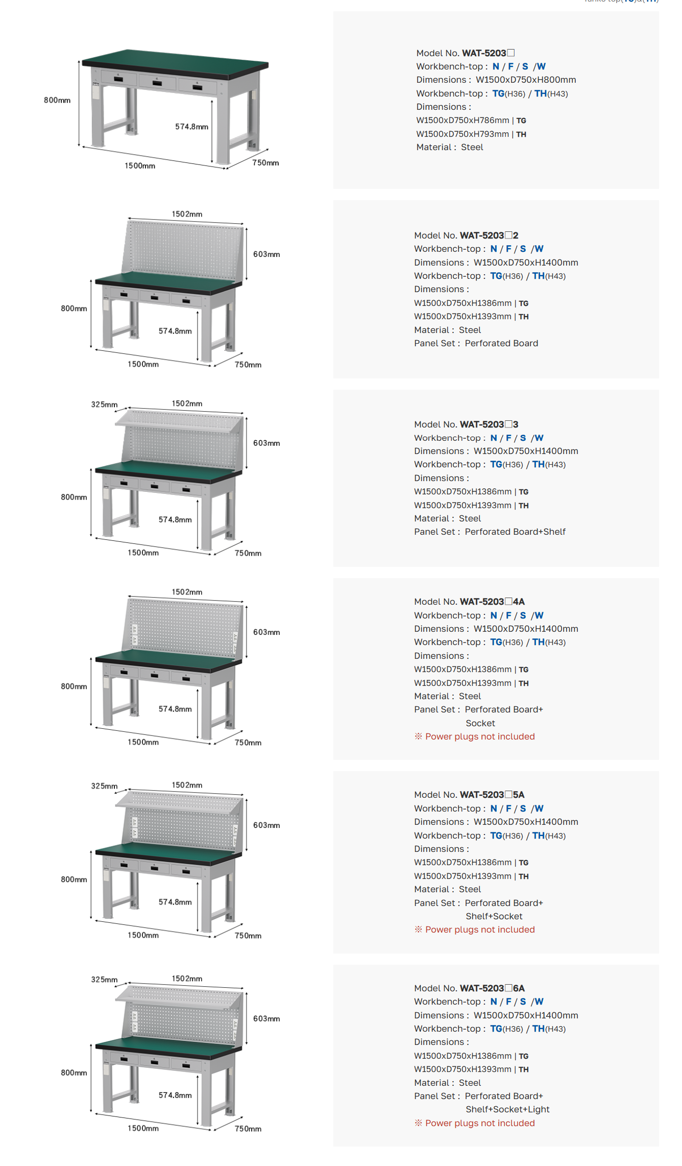 ขนาดโต๊ะทำงานช่าง : W1500 × D750 × H800 mm