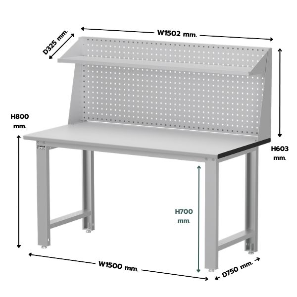 - ชื่อสินค้า : โต๊ะทำงานช่าง หน้าท็อปลามิเนต พร้อมแผงแขวนเครื่องมือ