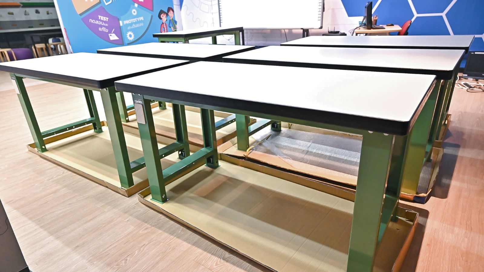 - โต๊ะช่างมีความหนา 30 มม. รับแรงกระแทกได้ดี ทนกรดและด่างได้