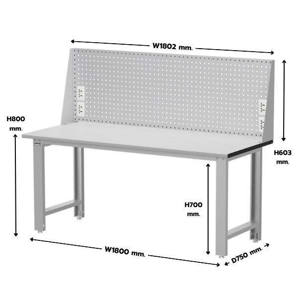 - ชื่อสินค้า : โต๊ะทำงานช่าง หน้าท็อปลามิเนต พร้อมแผงแขวนเครื่องมือและช่องปลั๊กไฟ