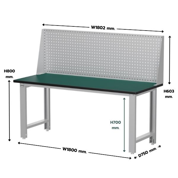- โต๊ะช่างมีความหนา 30 มม. รับแรงกระแทกได้ดี ทนกรดและด่างได้