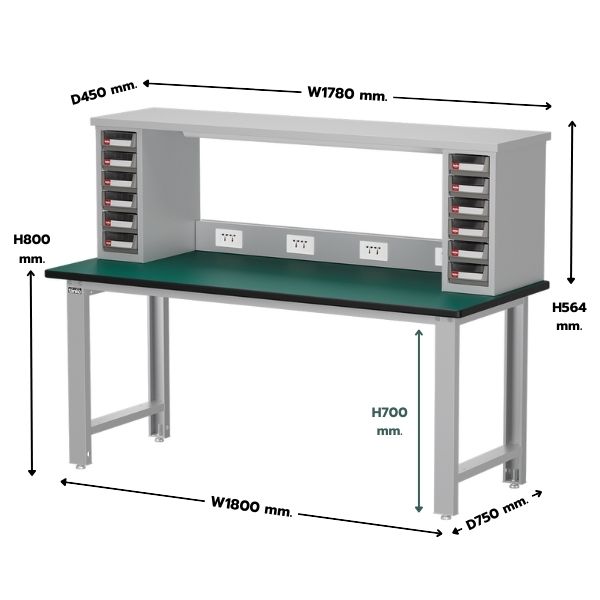 - ชื่อสินค้า : โต๊ะทำงานช่าง หน้าท็อปยาง พร้อมกล่องใส่อะไหล่ ชั้นวาง ปลั๊กไฟ และหลอดไฟ
