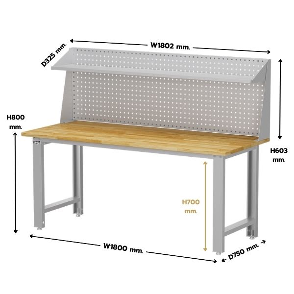 - ชื่อสินค้า : โต๊ะทำงานช่าง หน้าท็อปไม้ พร้อมแผงแขวนเครื่องมือและชั้นวาง