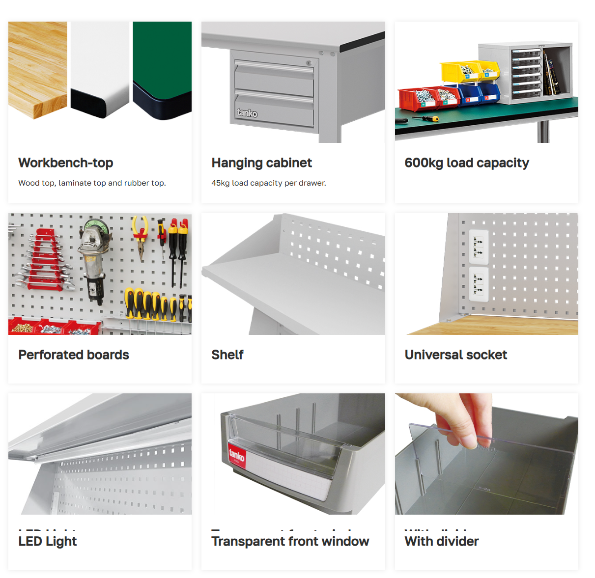 โต๊ะเครื่องมือช่างมีความหนา 30 มม. รับแรงกระแทกได้ดี ทนกรดและด่างได้