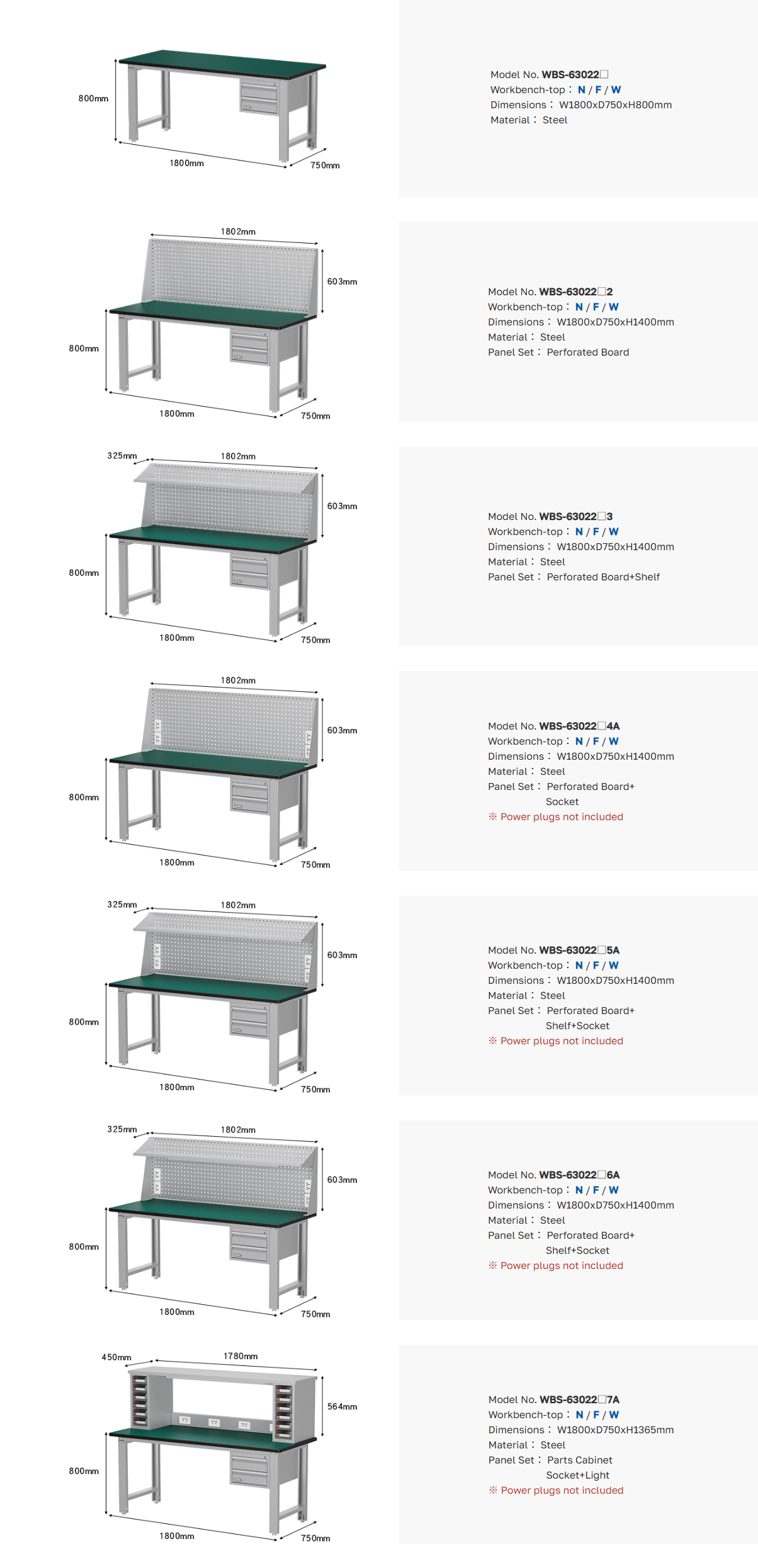 โต๊ะช่างมีขนาด W1800 x D750 x H800 mm.