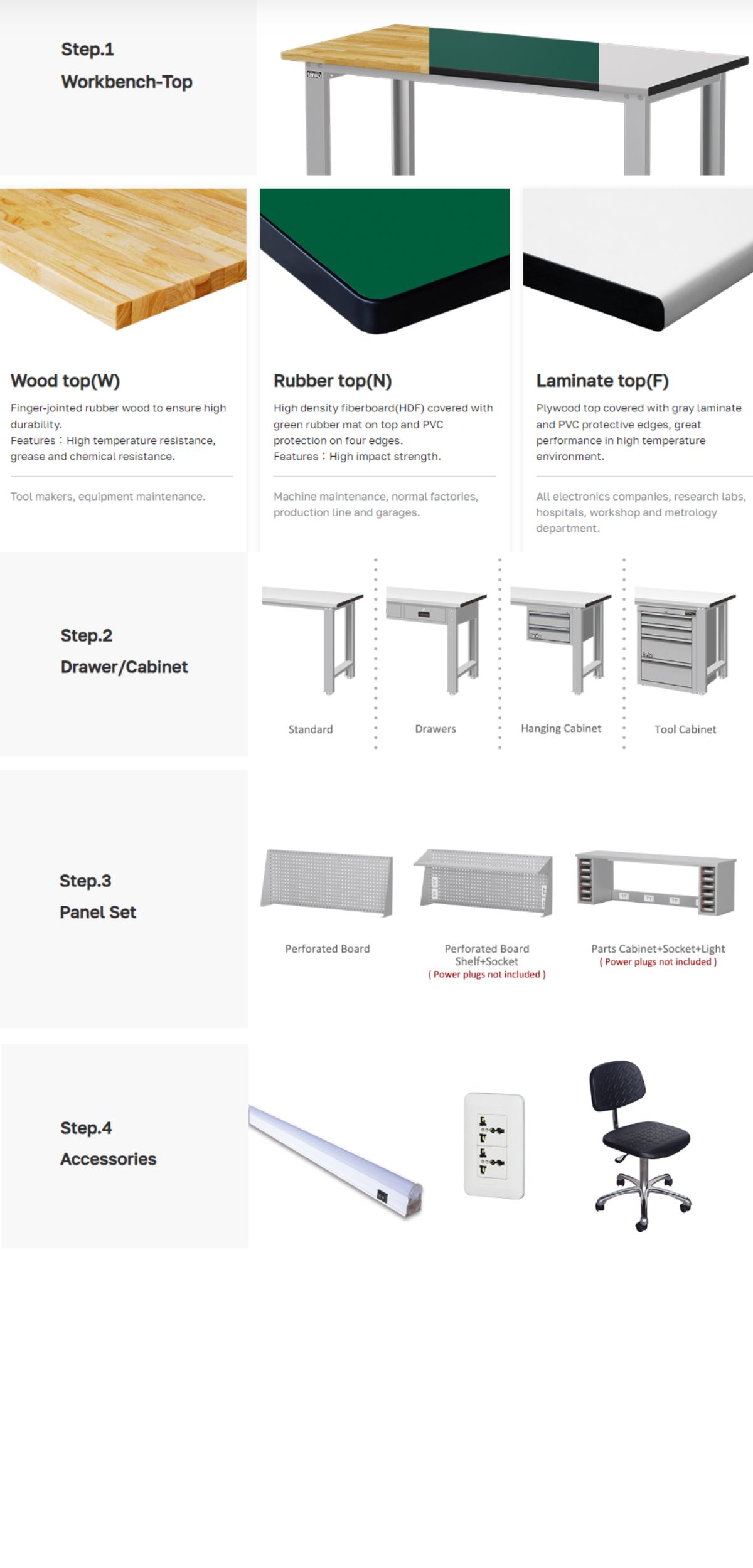 โต๊ะเครื่องมือช่างมีความหนา 30 มม. รับแรงกระแทกได้ดี ทนกรดและด่างได้