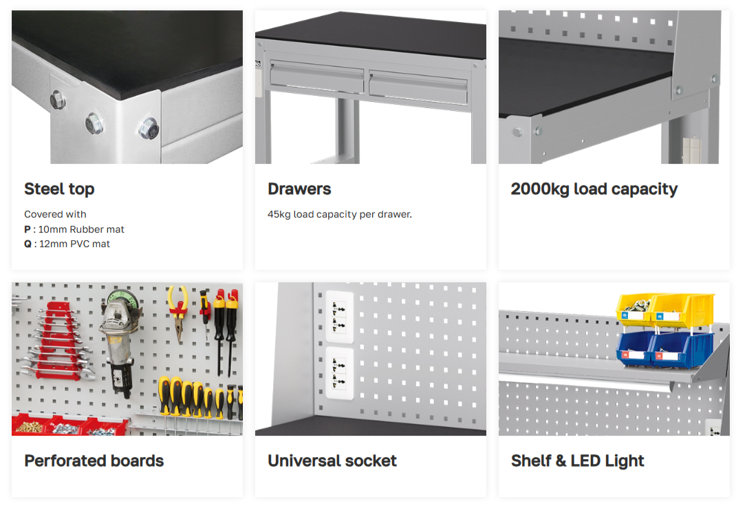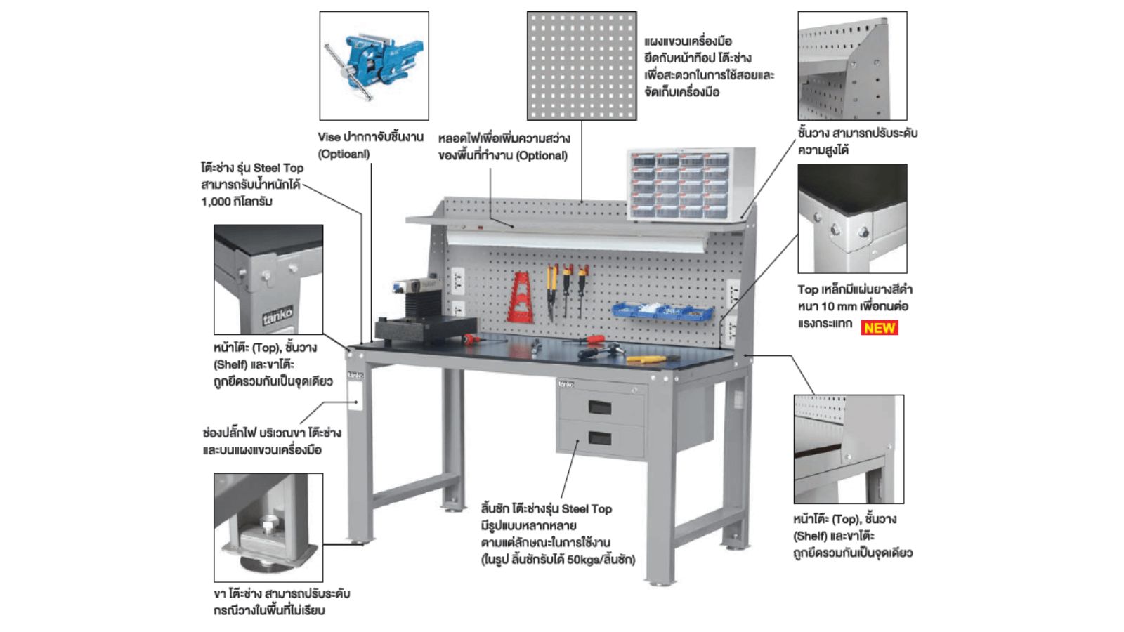 ลิ้นชักจำนวน : 2 ชั้นซ้ายขวา รับน้ำหนักได้ช่องละ 45 กิโล