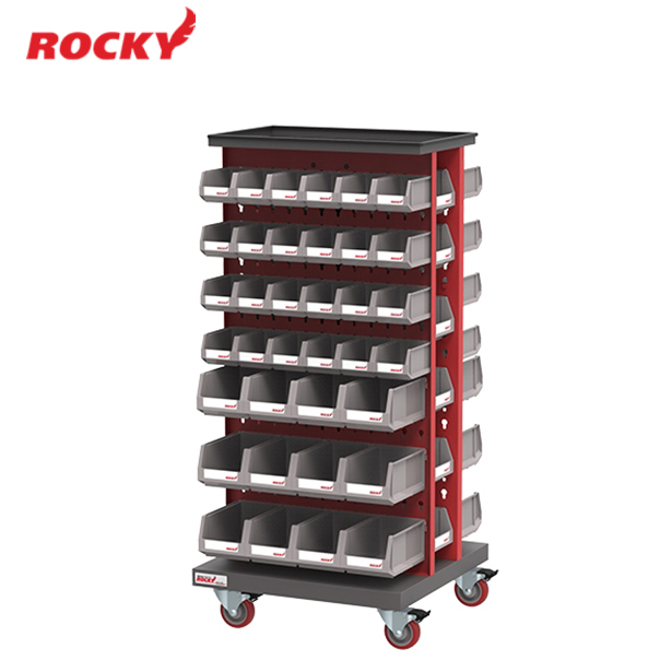 ประกอบด้วย : กล่องอะไหล่ ที่ทำจากพลาสติก ABS สามารถทนต่อการเก็บอะไหล่ที่มีน้ำมัน มีป้ายกำกับเพื่อง่ายและสะดวกในการจัดเก็บเป็นหมวดหมู่ ถาดวางเครื่องมือด้านบน ขาแผงแขวนกล่องใส่อะไหล่สามารถปรับระดับความสูงได้ และล้อคู่หน้าที่มีระบบล็อกล้อ