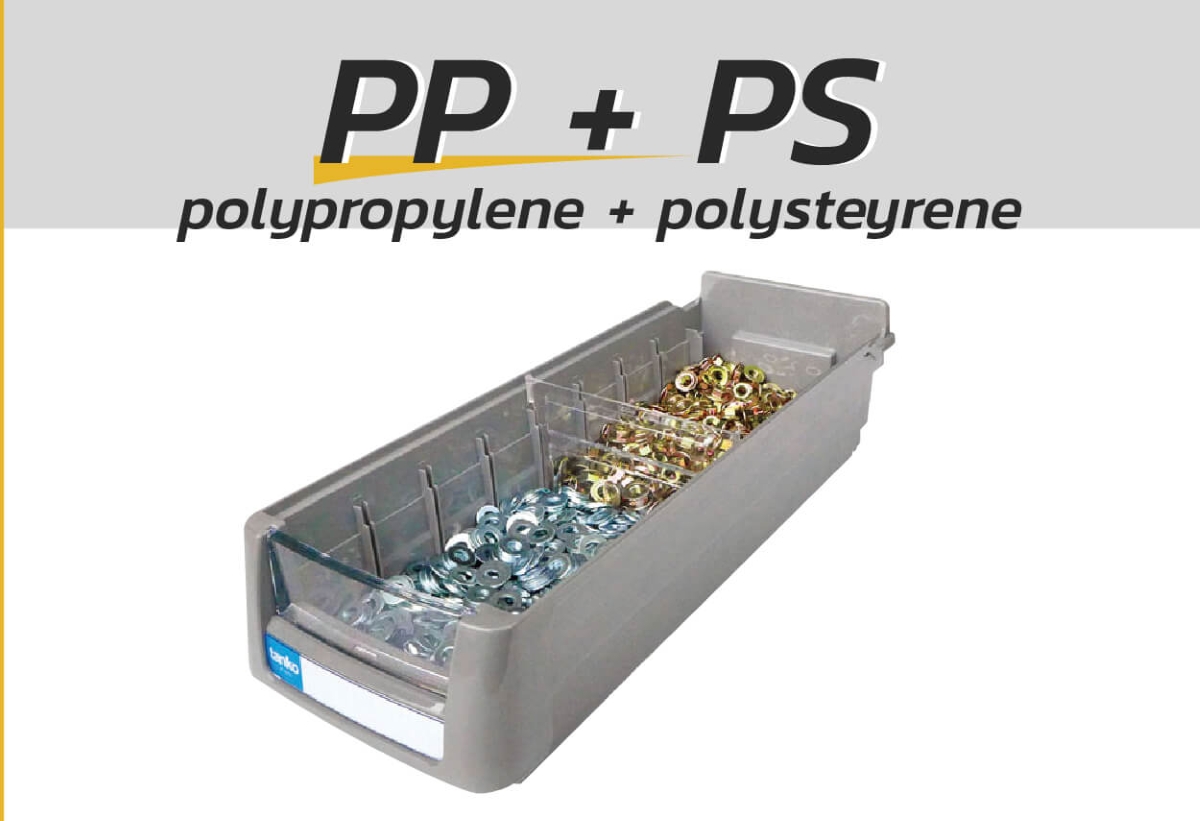 การผสมผสาน PP (Polypropylene) และ PS (Polystyrene) ช่วยเพิ่มความยืดหยุ่นและความทนความร้อน PP ทนความร้อนได้สูงและปลอดภัยกว่า PS ในการสัมผัสอาหาร ส่วน PS โปร่งใสและแข็ง ทำให้กล่องอะไหล่ประเภทนี้ได้ทั้งความใสที่ช่วยมองเห็นภายในและความทนความร้อนที่ดีกว่า PS เพียงอย่างเดียว