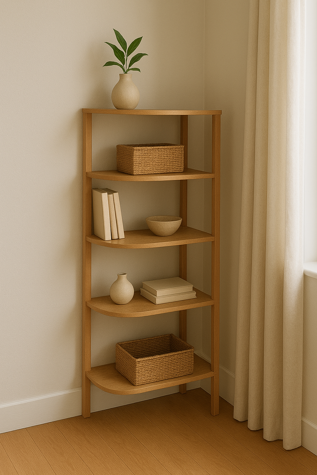 ชั้นวางมุมห้องออกแบบมาเพื่อใช้พื้นที่ในมุมห้องให้เกิดประโยชน์สูงสุด เหมาะสำหรับเก็บสิ่งของขนาดเล็กหรืออุปกรณ์ที่ใช้บ่อย ประหยัดพื้นที่มุมห้อง เพิ่มพื้นที่ใช้งาน มองเห็นได้อย่างชัดเจนและเข้าถึงได้ง่าย เหมาะกับการวางสิ่งของที่ต้องเคลื่อนย้ายบ่อยหรือต้องการตั้งโชว์ ตกแต่งเพิ่มความสวยงามในห้องยิ่งขึ้น