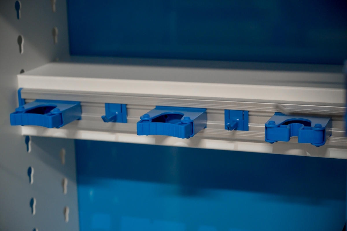 ตู้เก็บอุปกรณ์ทำความสะอาด ROCKY ถูกออกแบบมาเพื่อใช้พื้นที่ได้อย่างคุ้มค่า ด้วยการใช้แผงแขวนและตะขอในการแขวนอุปกรณ์ทำความสะอาด จึงสามารถเก็บของได้มากขึ้น โดยไม่ใช้พื้นที่วางของมากเกินไปเหมาะสำหรับพื้นที่จำกัด